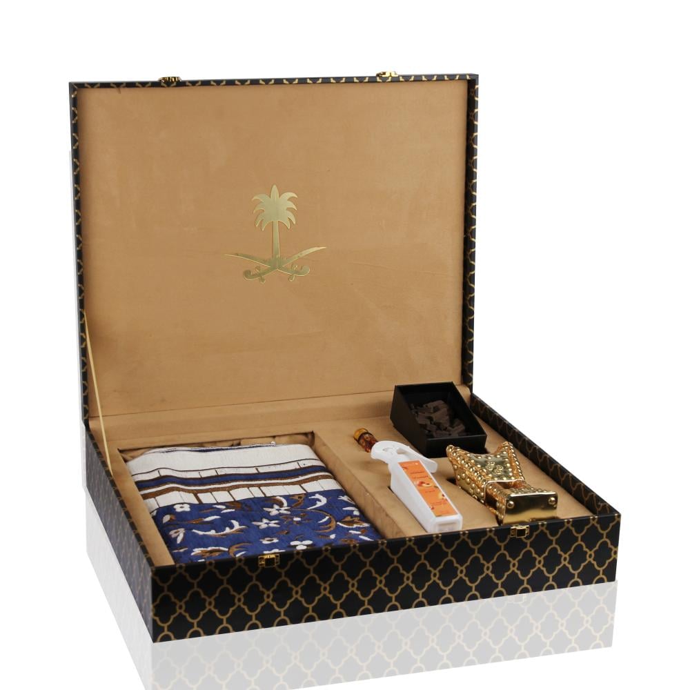 علبة إهداء فاخرة سيفين ونخلةتحتوى على :بخور مروكي محسن بيبي ملكي {أوقيتين}مبخرة حائلية صغيرةمعطر خوخ للمنزل {150 مل}مخلط الهند {ربع تولة}مقاسات علبة الاهداءالطول : 50 سمالعرض : 40 سمالارتفاع : 10 سم