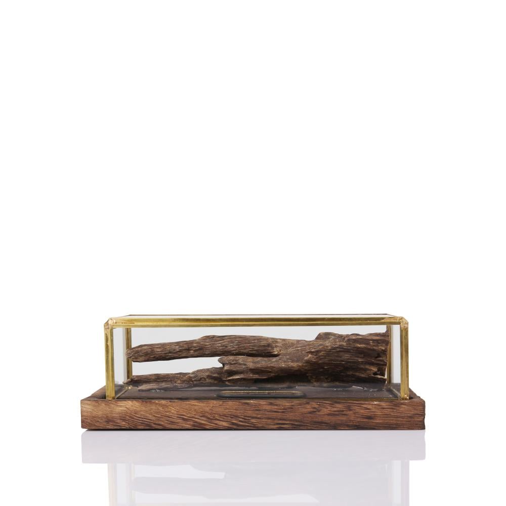 في علبة زجاجية انيقة باللون الذهبي مع قاعدة خشبية
